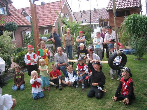 Jedoch sind Piratenfeste keine „Kindersache“. Feiern Erwachsene ihr Piratenfest, wird der Apfelsaft gegen Rum eingetauscht und die Piraten packen die spektakulärsten Geschichten aus, die sie auf hoher See erlebt haben. Wenn ein Holzbein dreimal auf den Boden stampft verstummen alle, denn jeder weiß Bescheid, dass jetzt der älteste Pirat anfängt von seinem ersten Piratenfest zu berichten…