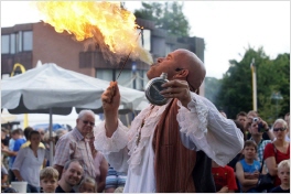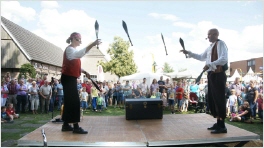 Bühnenshow mit viel Comedy, Messern, Feuer und Publikumsanimation.