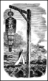 gehängt. Zwei Stricke reißen, der dritte hält. Zur Abschreckung wird sein Leichnam in einem Käfig über die Themse gehängt.